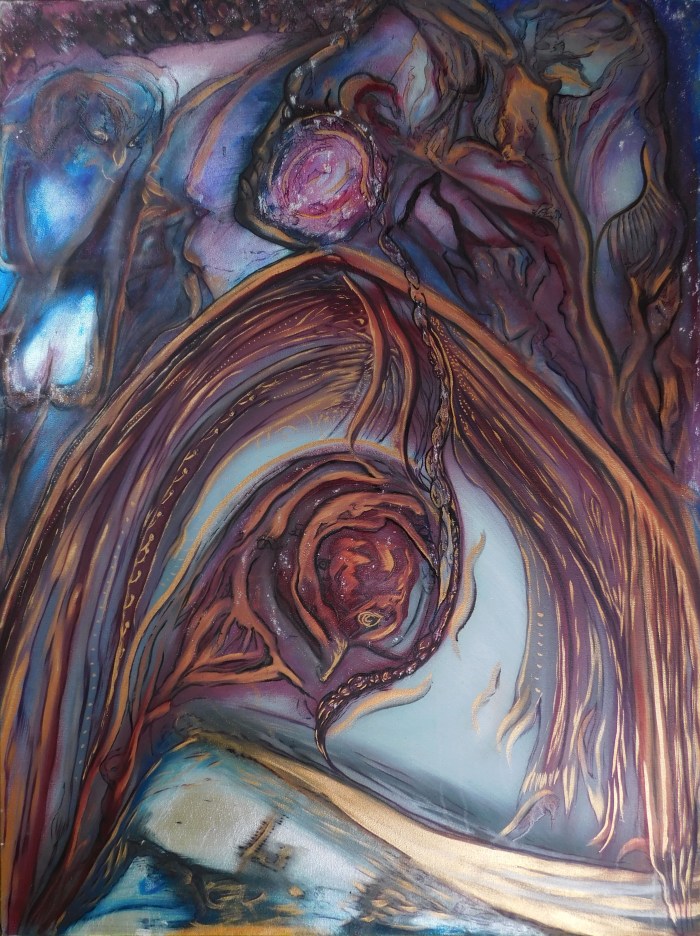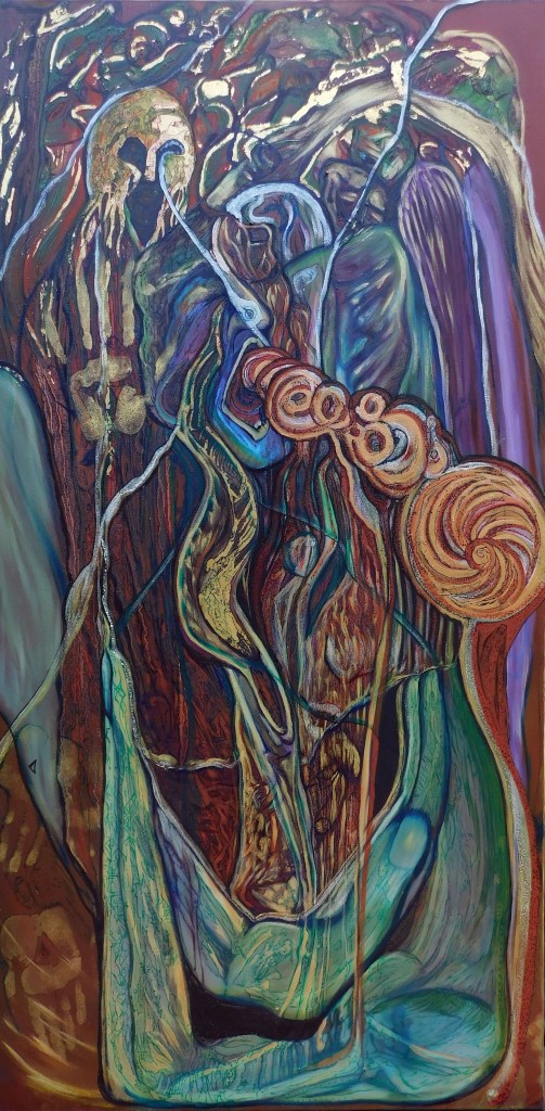 Oil on Canvas with Metal Leaf, 30 x 40″